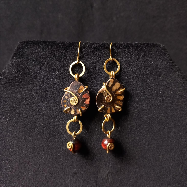 Boucles Laiton ammonite & tigre