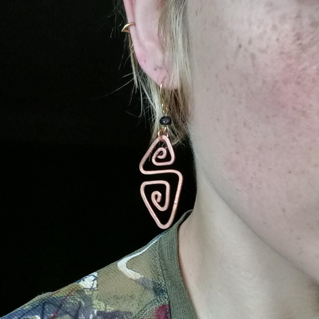 – Fils : Cuivre martelé (1,5mm) + finitions et accroche en Laiton (0,8mm)